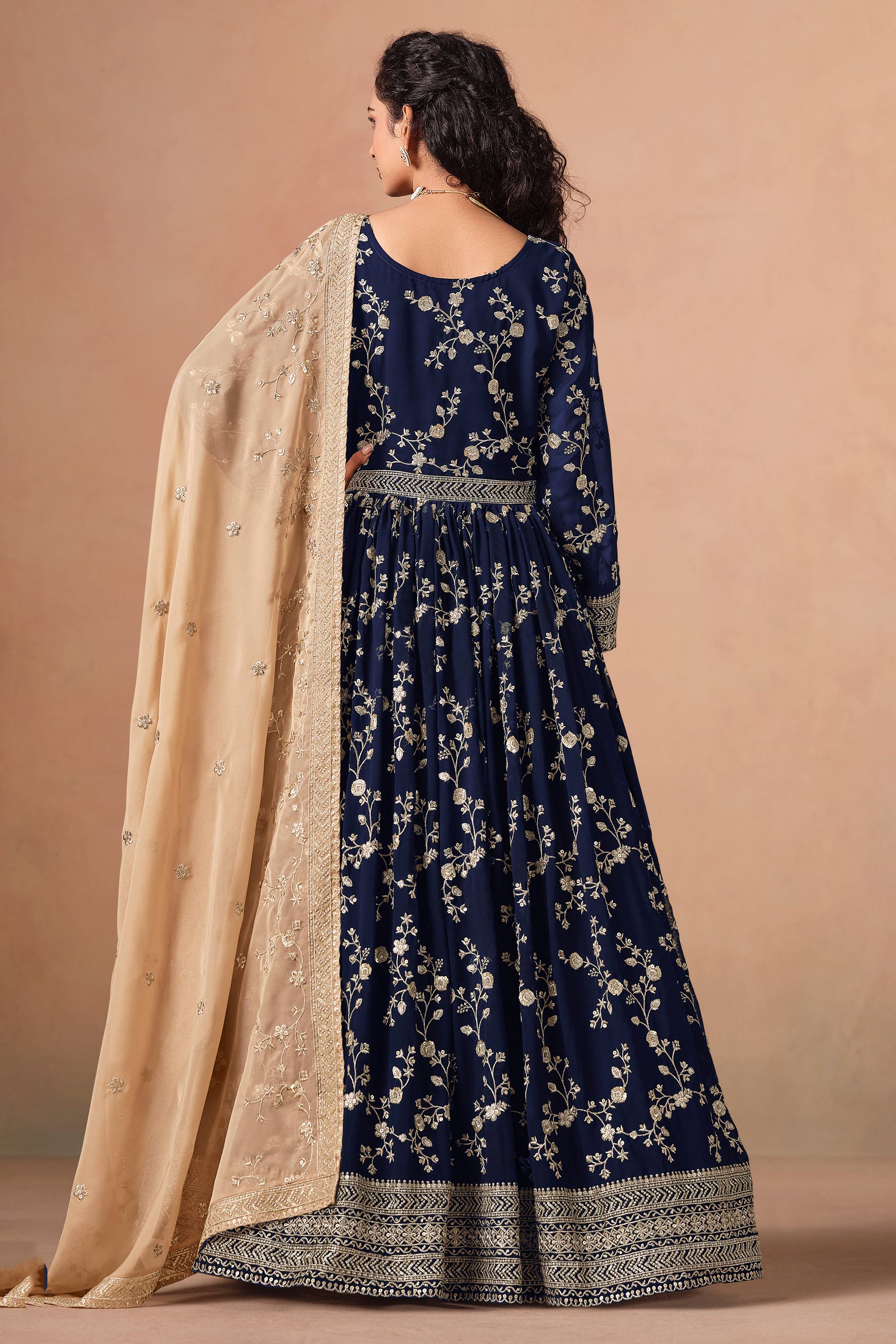 Navy Blue Faux Georgette Designer Anarkali Suit With Dupatta