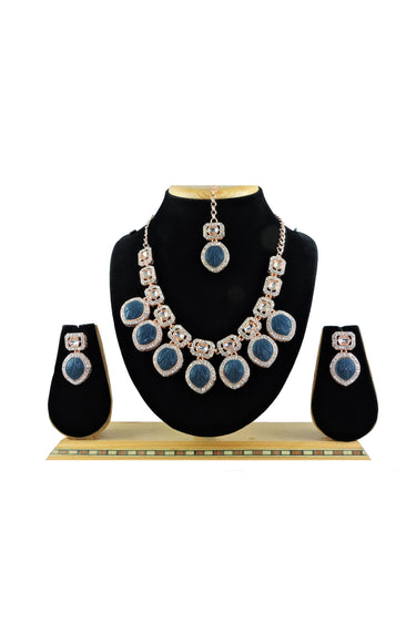 Navy Blue Stone Attractive Necklace Set With Earrings