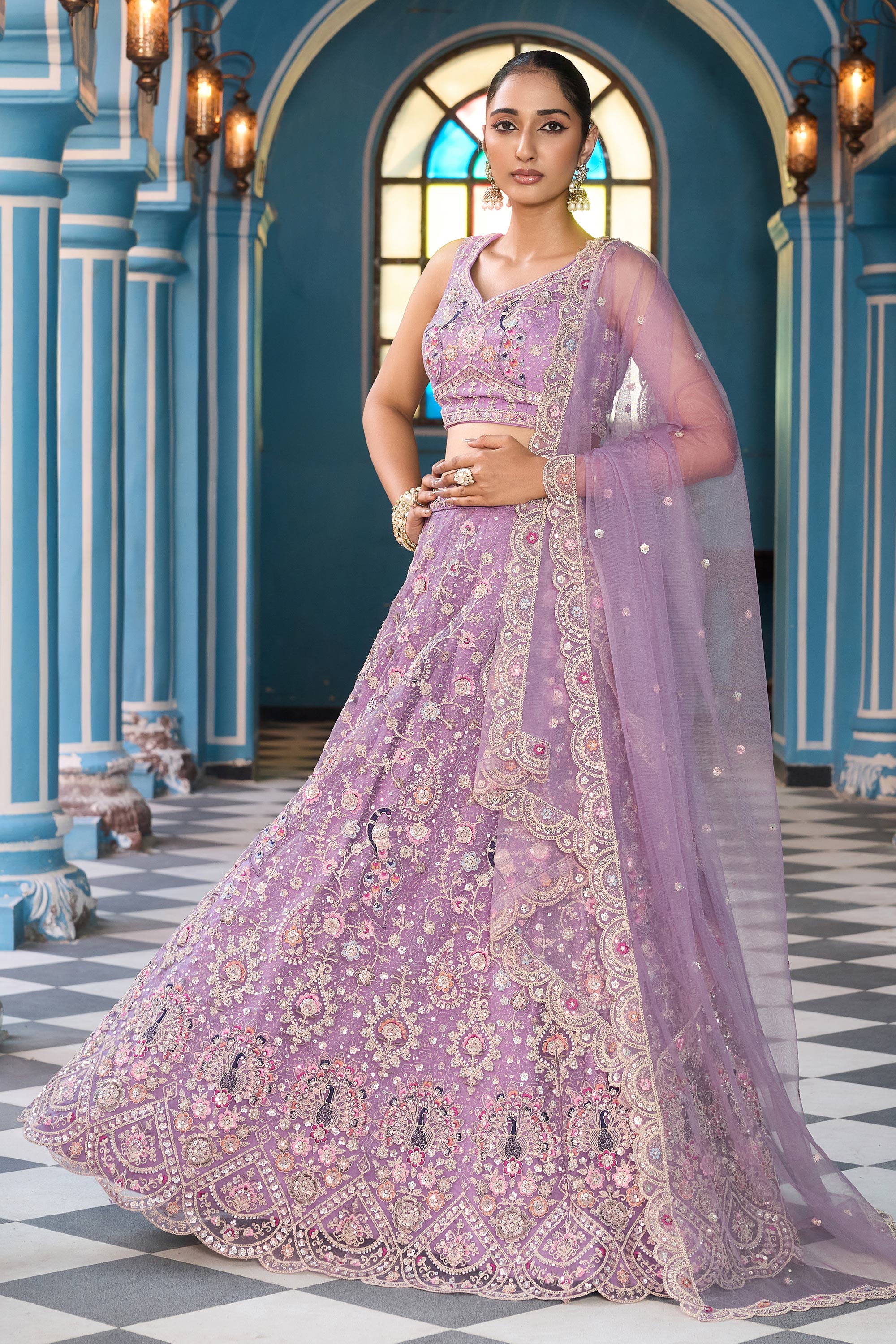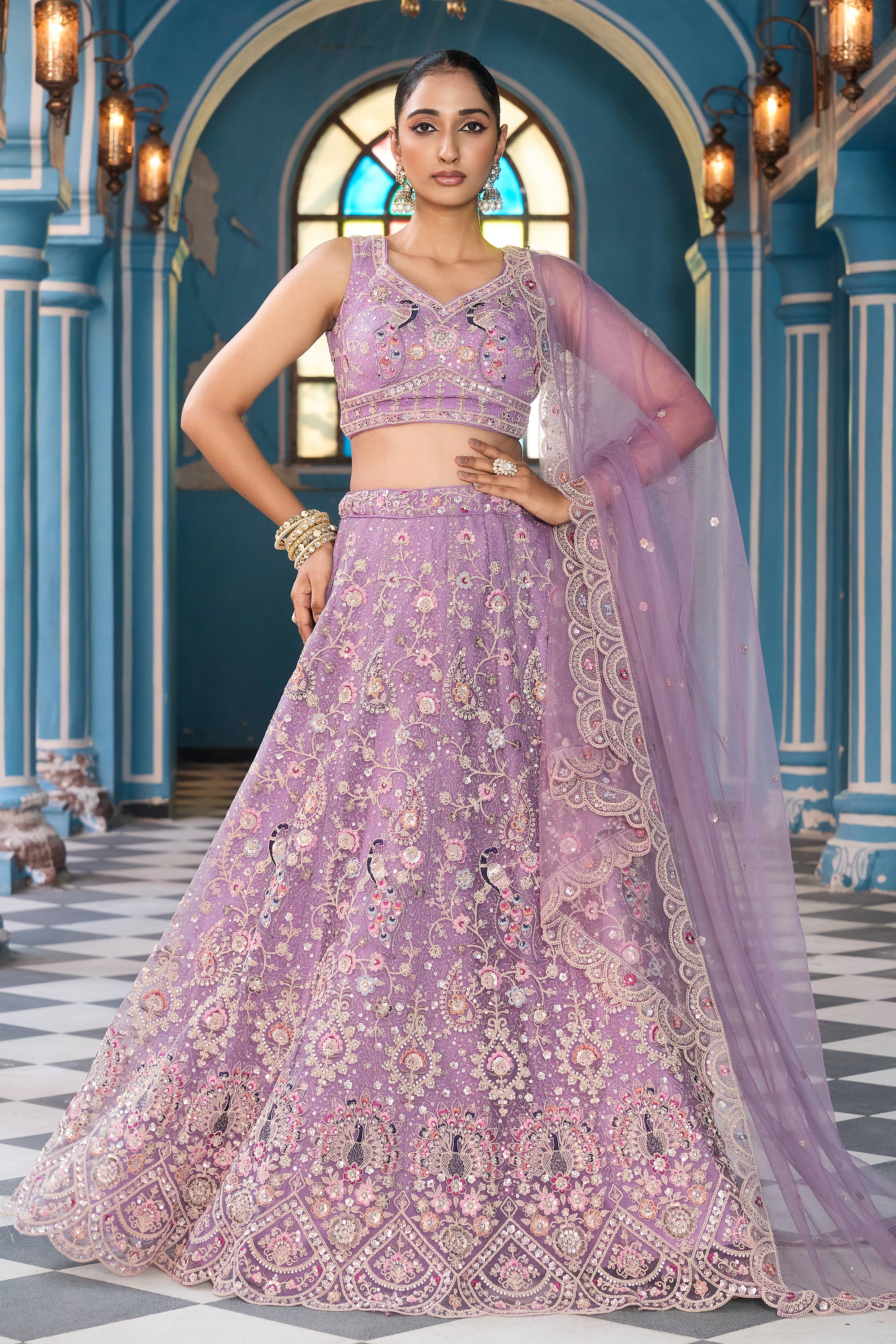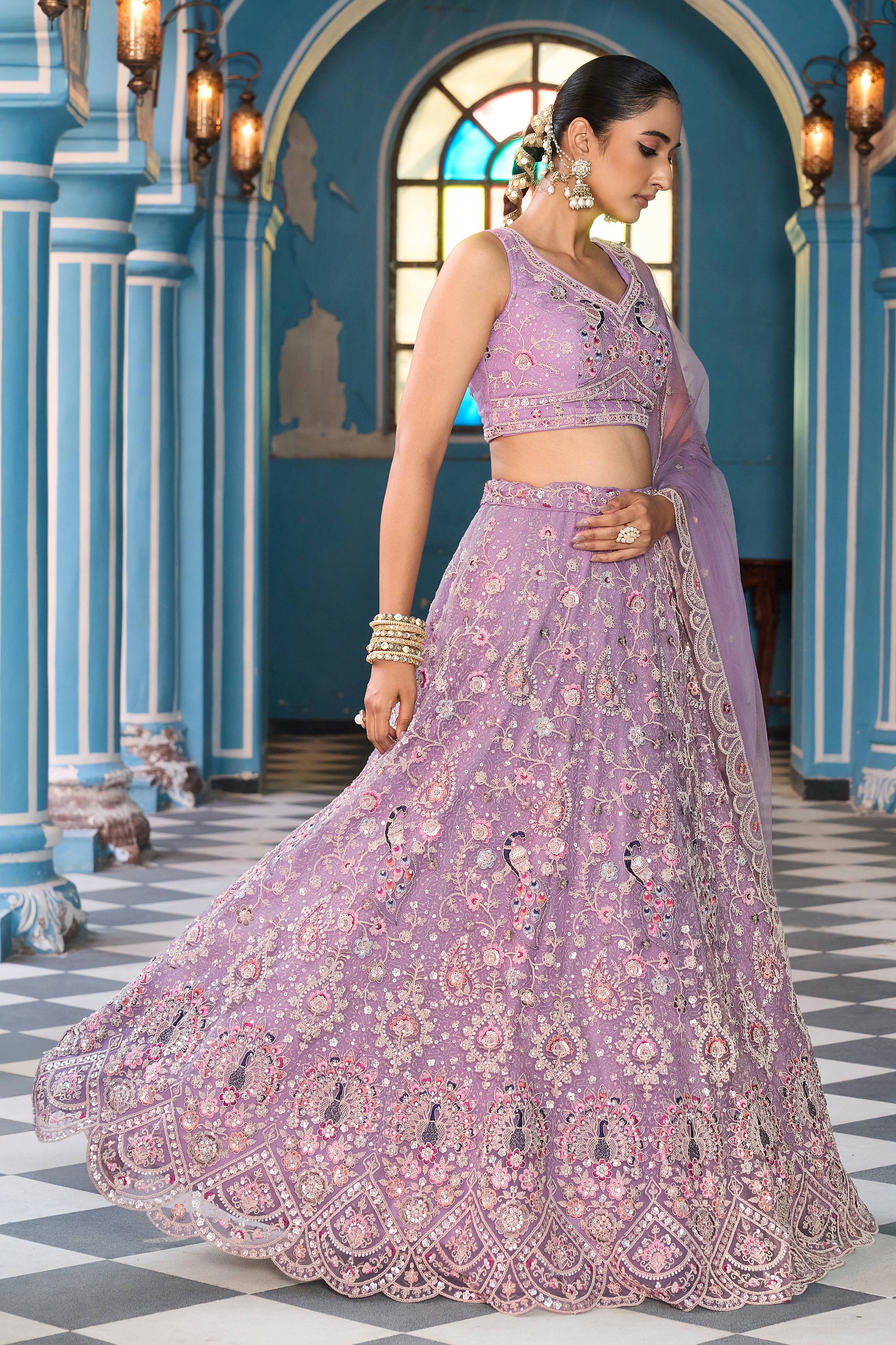 Net Embroidered Lavender Wedding Wear Lehenga Choli
