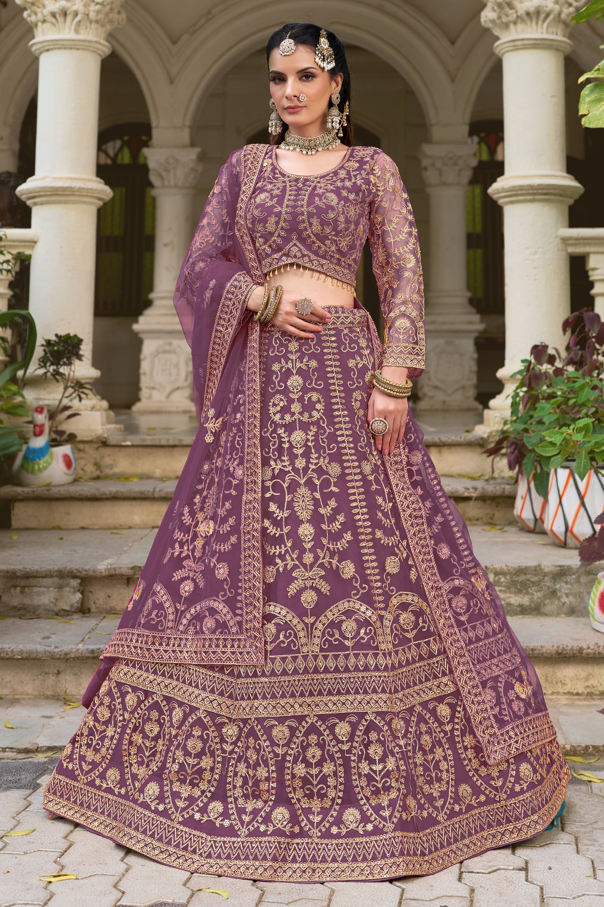 Net Embroidered Purple Lehenga Choli In Net Fabric
