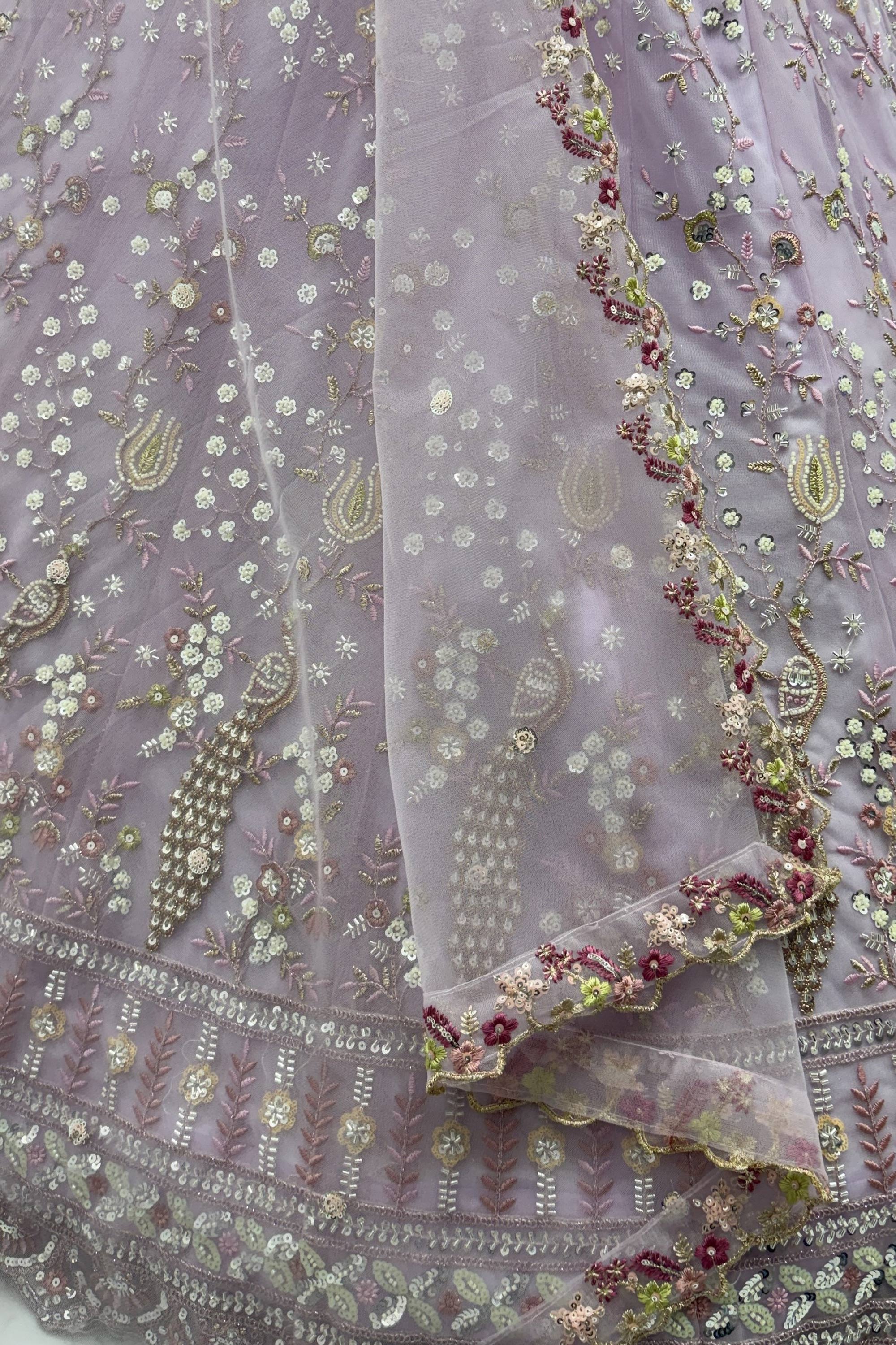 Net Fabric Lavnder Wedding Wear Lehenga Choli With Dupatta