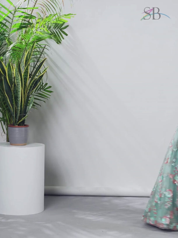 Net Fabric Sea Green Occasion Wear Sequins Work Lehenga Choli