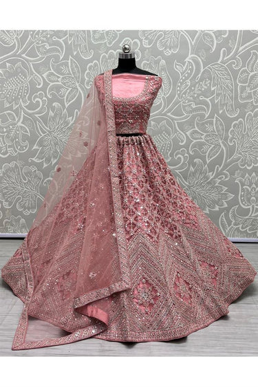 Net Fabric Wedding Look Amazing Bridal Lehenga In Pink Color