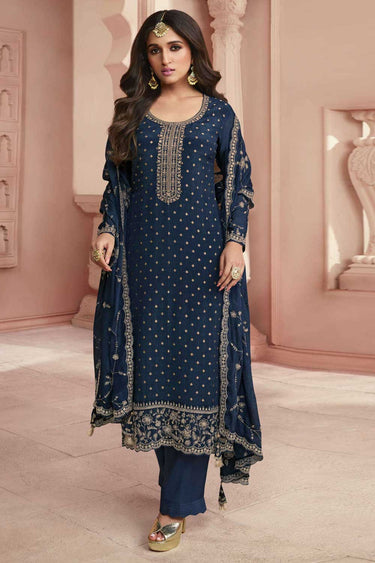 Nidhi shah Navy Blue Color Awesome Dola Silk Salwar Suit
