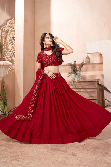 Occasion Wear Chaniya Choli In Red Georgette Fabric With Sequins Work And Wedding Wear Blouse