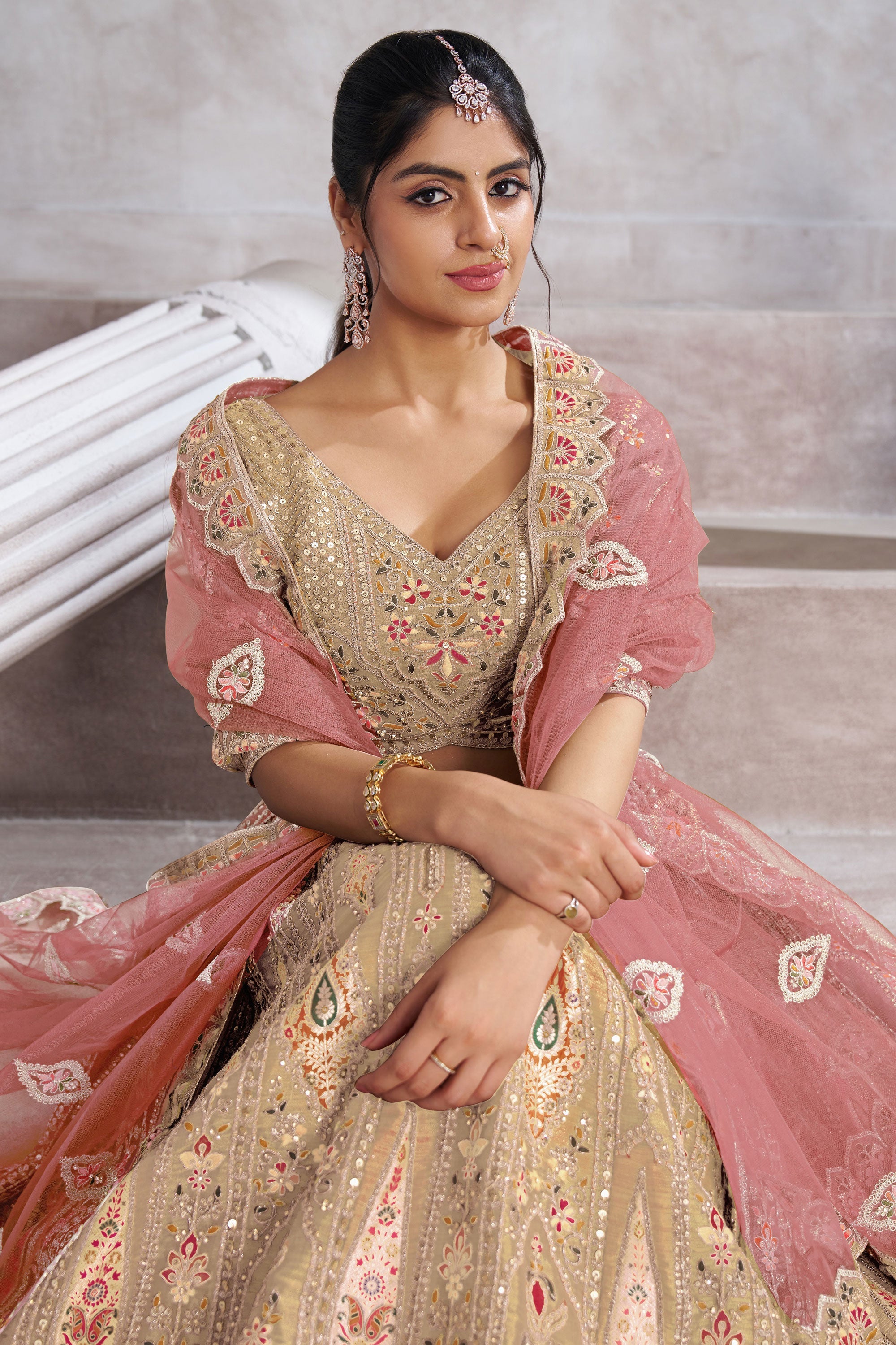 Occasion Wear Lehenga Choli In Beige Banarasi Silk Fabric