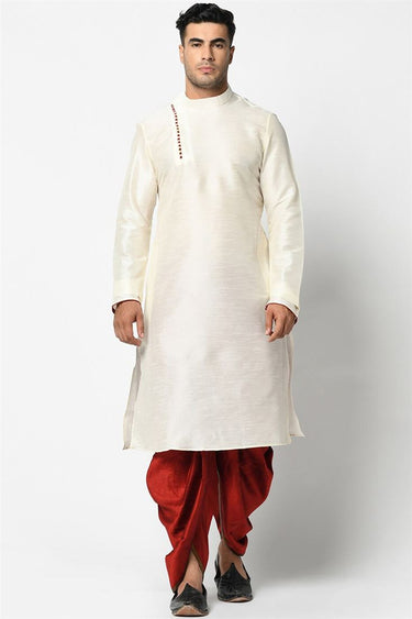 Off White Color Art Silk Fabric Wedding Wear Trendy Readymade Dhoti Style Kurta Pyjama For Men