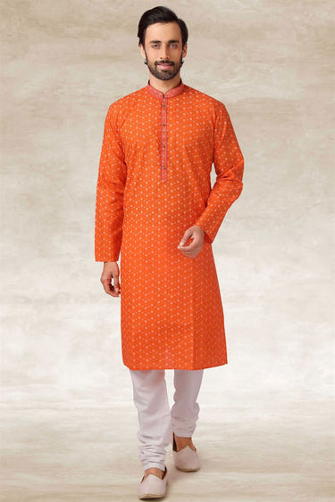 Orange Color Festival Wear Stright Kurta Pyjama In Cotton Fabric