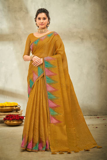 The Orange Linen Saree is available in a range of vibrant and trendy colors, allowing you to choose the one that complements your personal style. The beautiful interplay of colors and the fine embroidery work make this saree a true fashion statement.