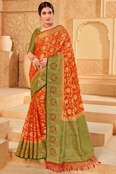 Whether you're attending a special event or adding a touch of elegance to your everyday attire, our Orange Color Organza Saree with Weaving Work is a perfect choice. It combines timeless charm, exceptional quality, and unmatched grace to make you feel like a true diva.