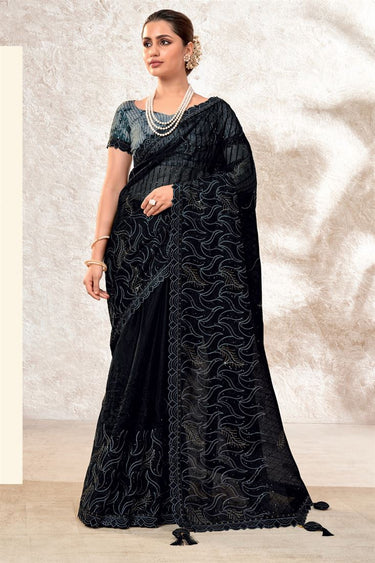 Organza Fabric Party Style Mesmeric Saree In Black Color