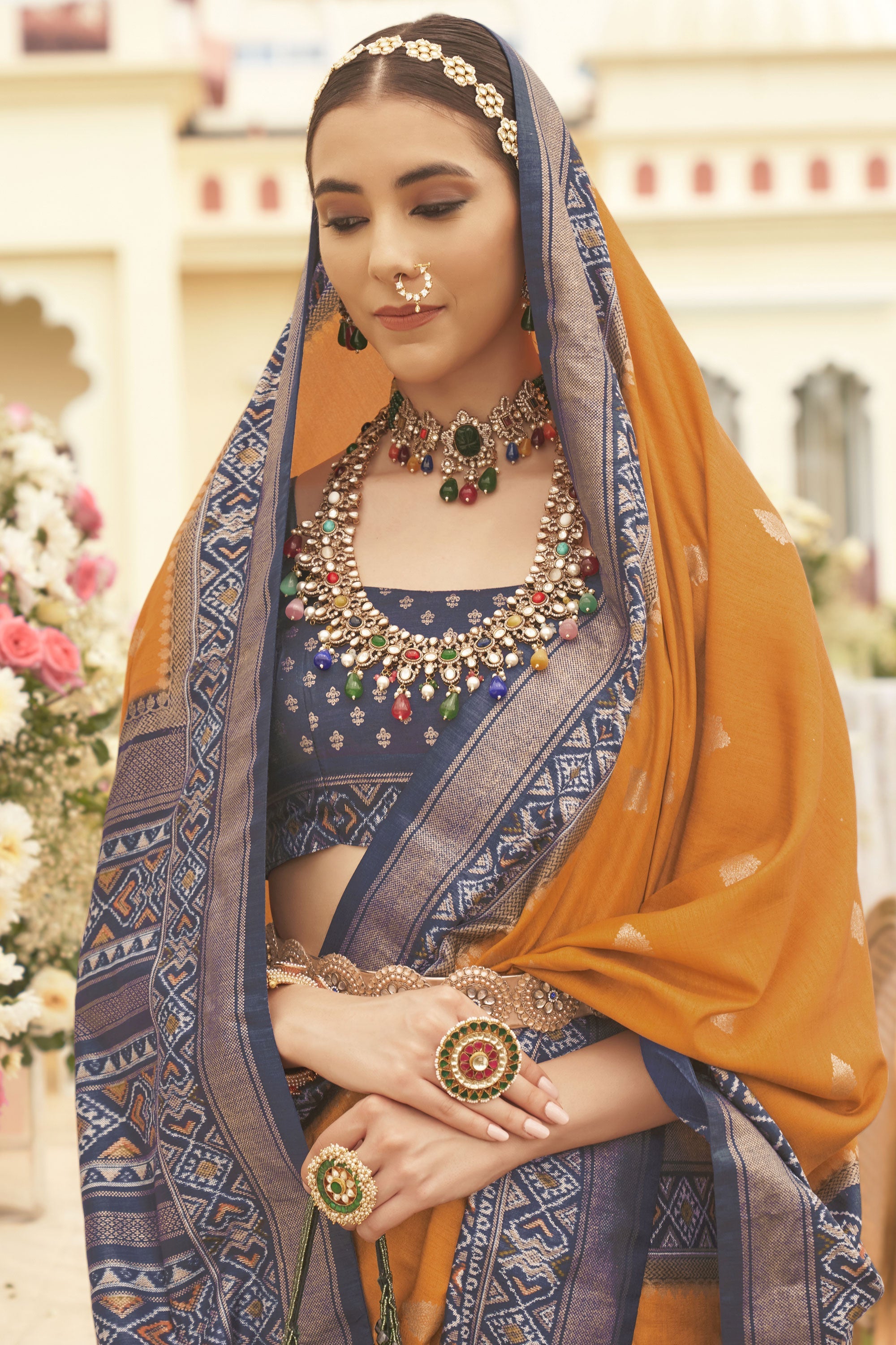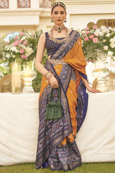 Steal the show with our Delightful Printed Patola Silk Function Wear Saree. A classic piece handcrafted by skilled artisans in India. Crafted from the finest quality Patola Silk, its mesmerizing print gives it an unparalleled elegance, perfect for all your grand functions and celebrations. With easy-to-manage material, the saree is as comfortable as it is beautiful. Take your ethnic wear game up a notch with this function wear saree!