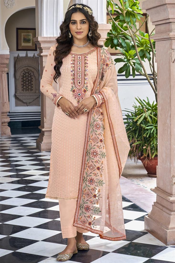 Peach Color Chinon Fabric Festive Look Classic Salwar Suit