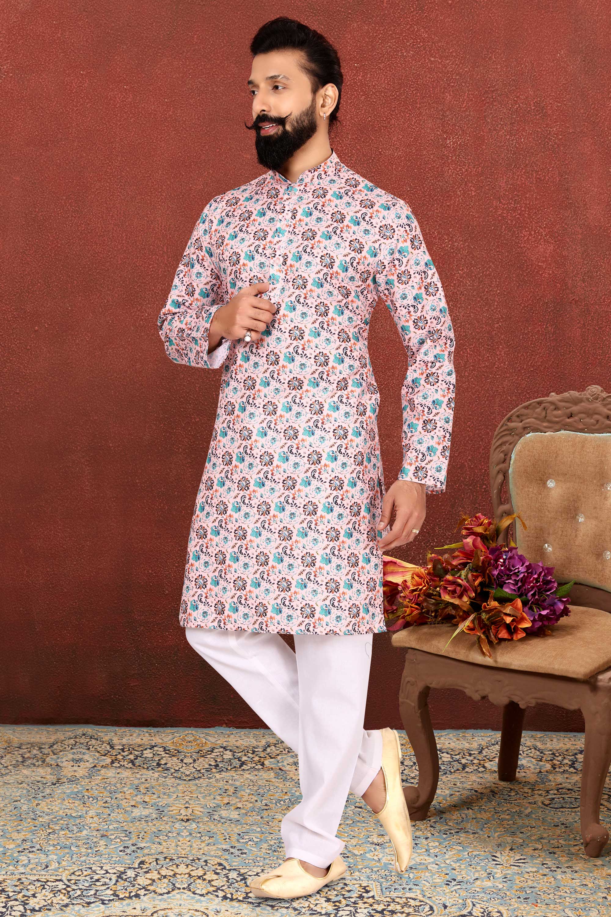 Peach Color Cotton Fabric Function Wear Readymade Kurta Pyjama For Men