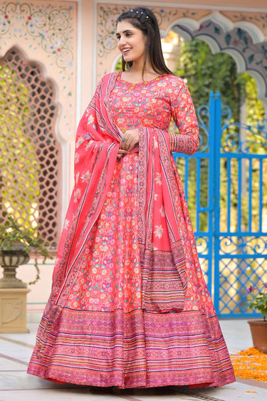 Peach Color Dola Silk Fabric Charming Readymade Anarkali Suit With Digital Printed Work