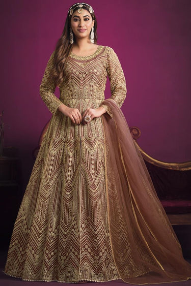 Peach Color Sangeet Wear Vintage Net Anarklai Suit