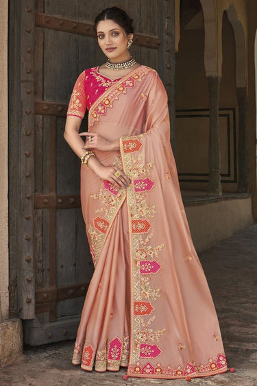 Peach Color Silk Fabric Function Wear Luminous Embroidered Saree