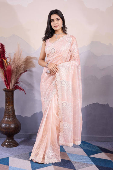 Peach Sequins Work Party Wear Saree With Attractive Blouse