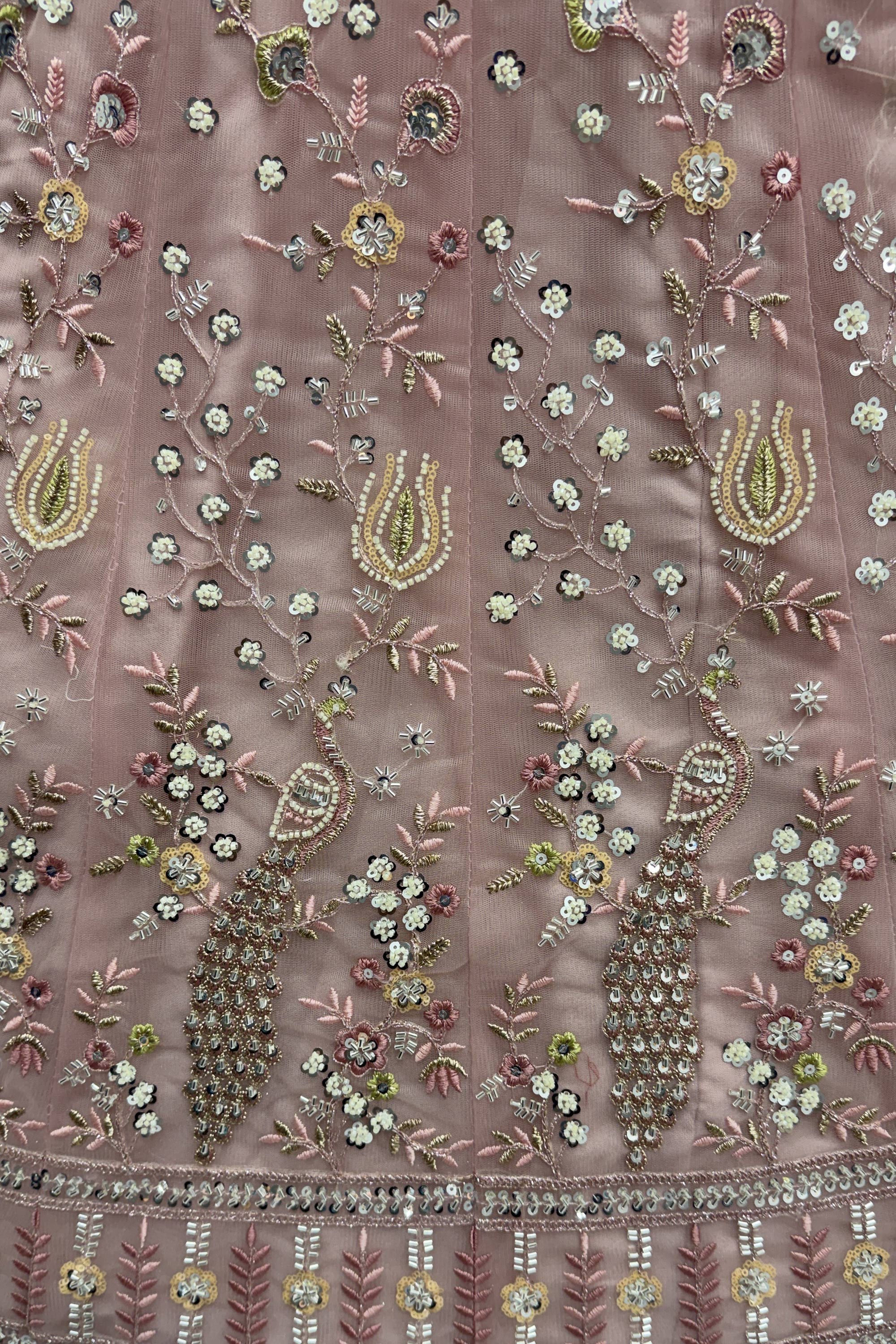 Peach Wedding Wear Net Fabric Embroidered Lehenga Choli