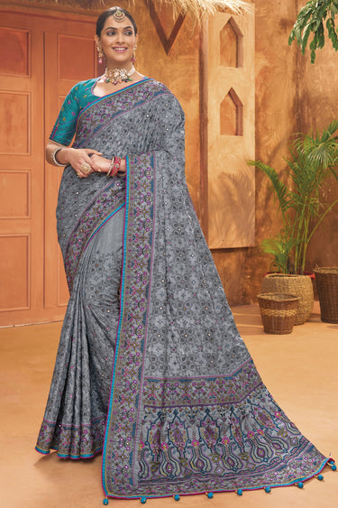 Phenomenal Kachhi Work Grey Color Banarasi Silk Saree