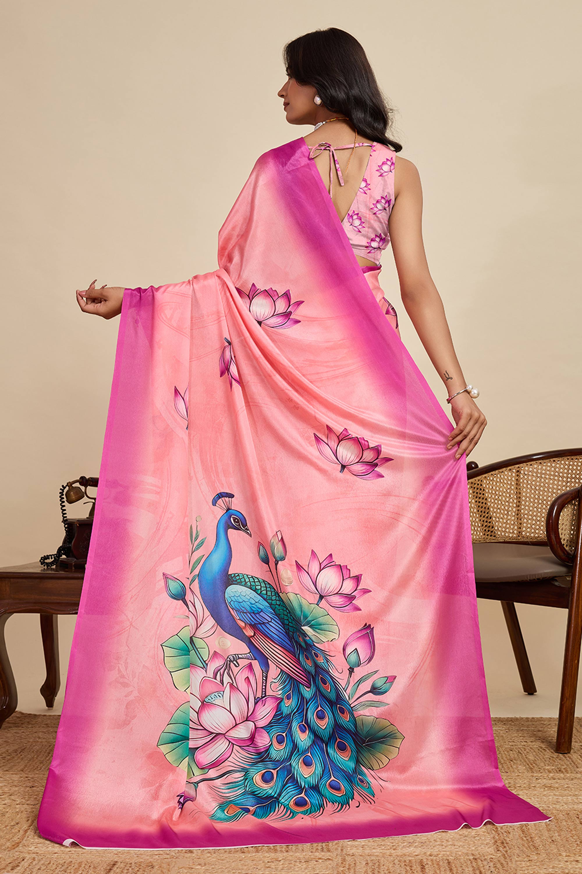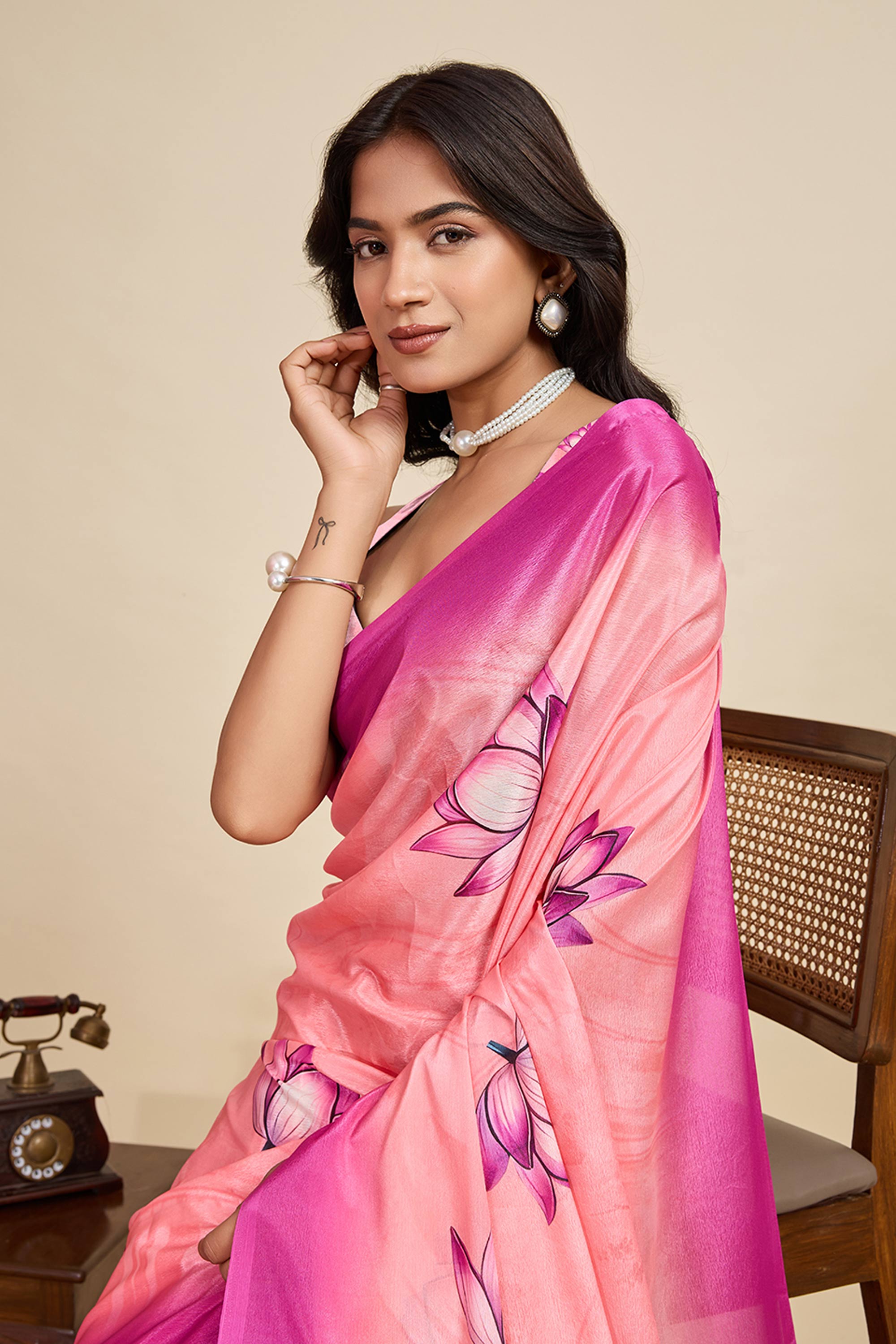 Pink Casual Wear Chinon Digital Printed Saree