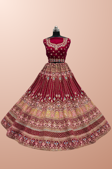 Pink Color Aristocratic Wedding Wear Bridal Lehenga In Velvet Fabric