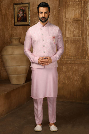 Pink Color Art Silk Fabric Amazing Kurta Pyjama Jacket Set