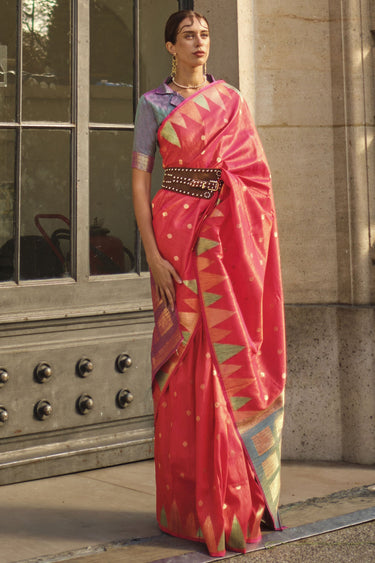 Pink Color Art Silk Fashionable Handloom Weaving Saree