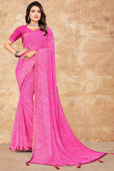 Pink Color Casual Wear Chiffon Fabric Beatific Saree