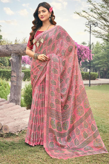 Pink Color Chiffon Fabric Chic Casual Style Saree