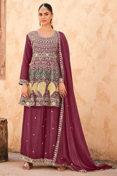Pink Color Chinon Fabric Lovely Readymade Palazzo Suit
