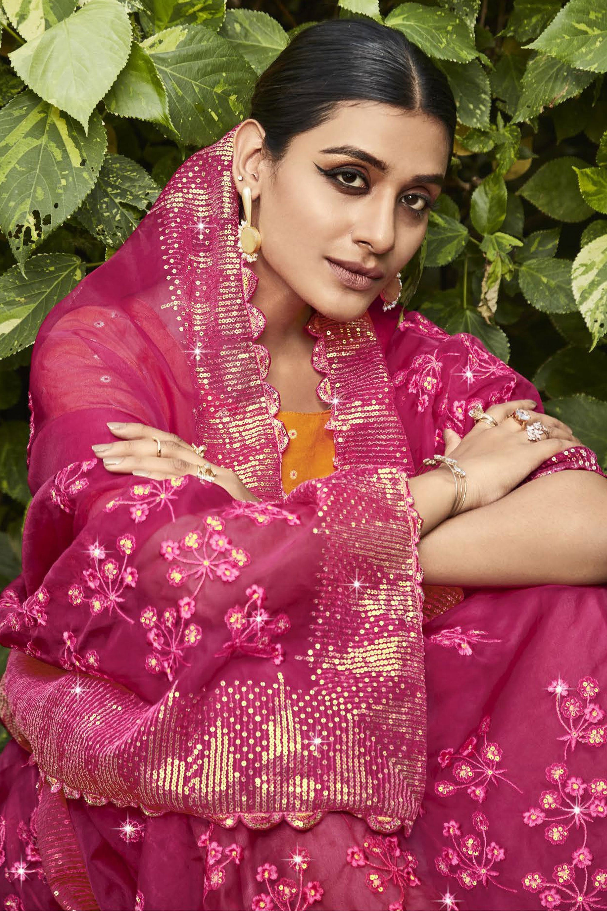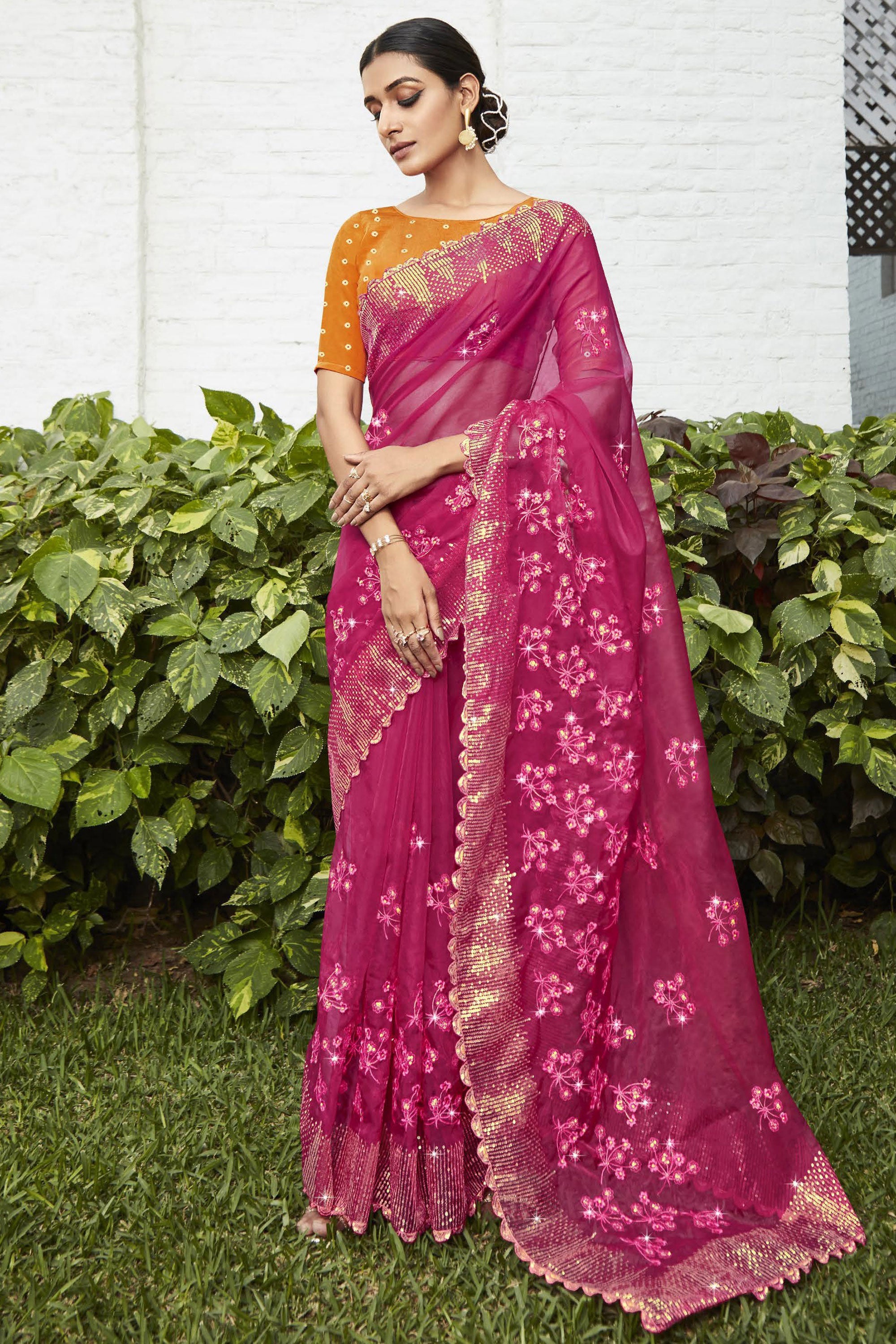 Pink Color Embroidered And Stone Work Party Style Miraculous Organza Saree