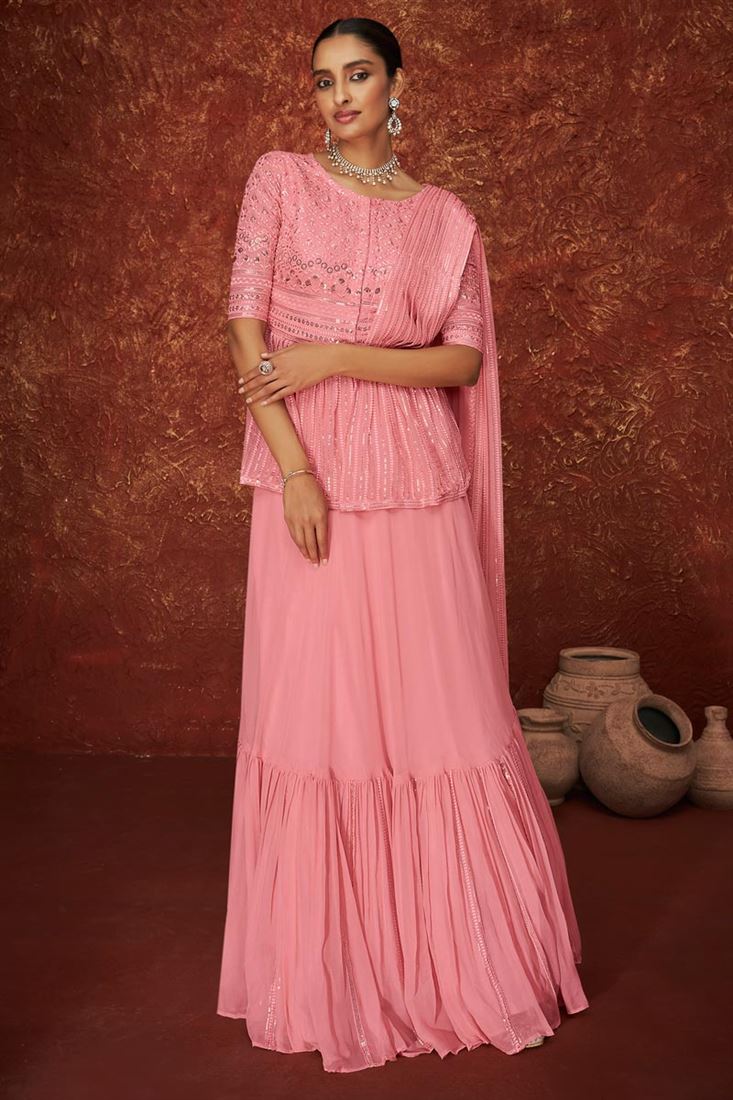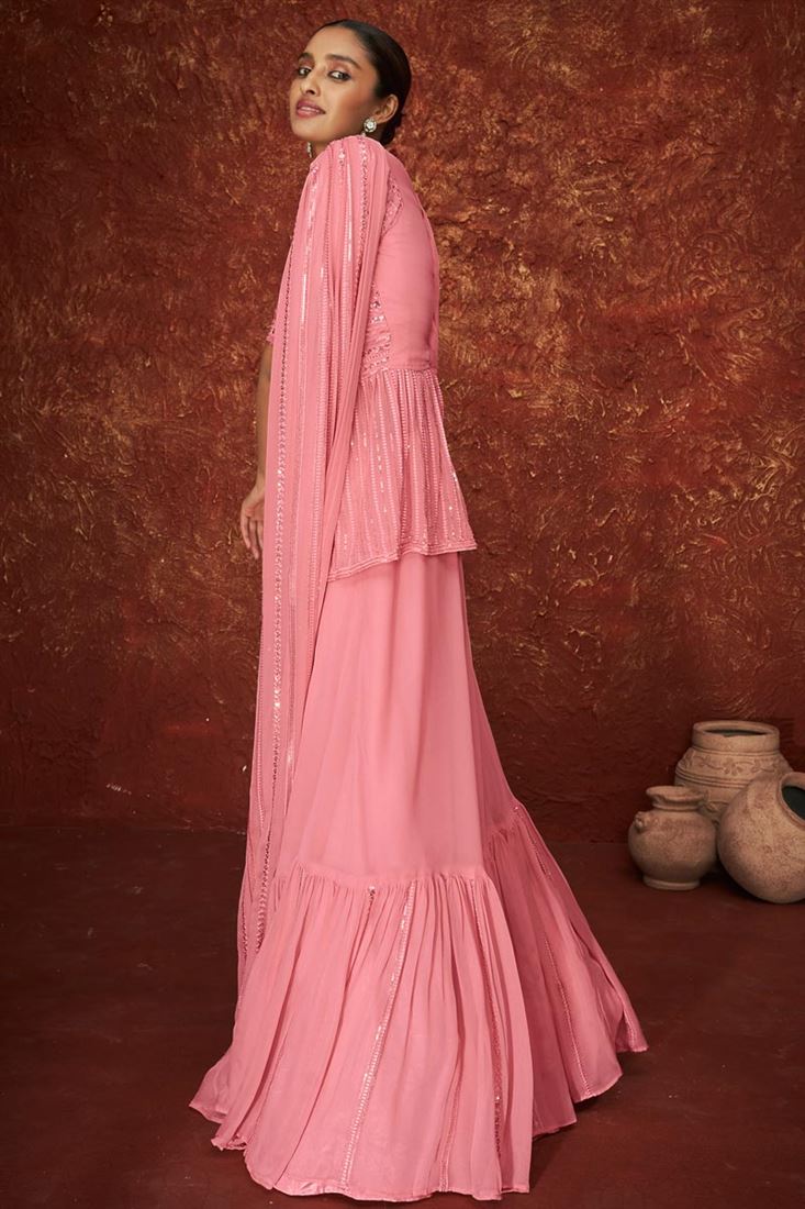 Pink Color Embroidered Attractive Georgette Palazzo Suit