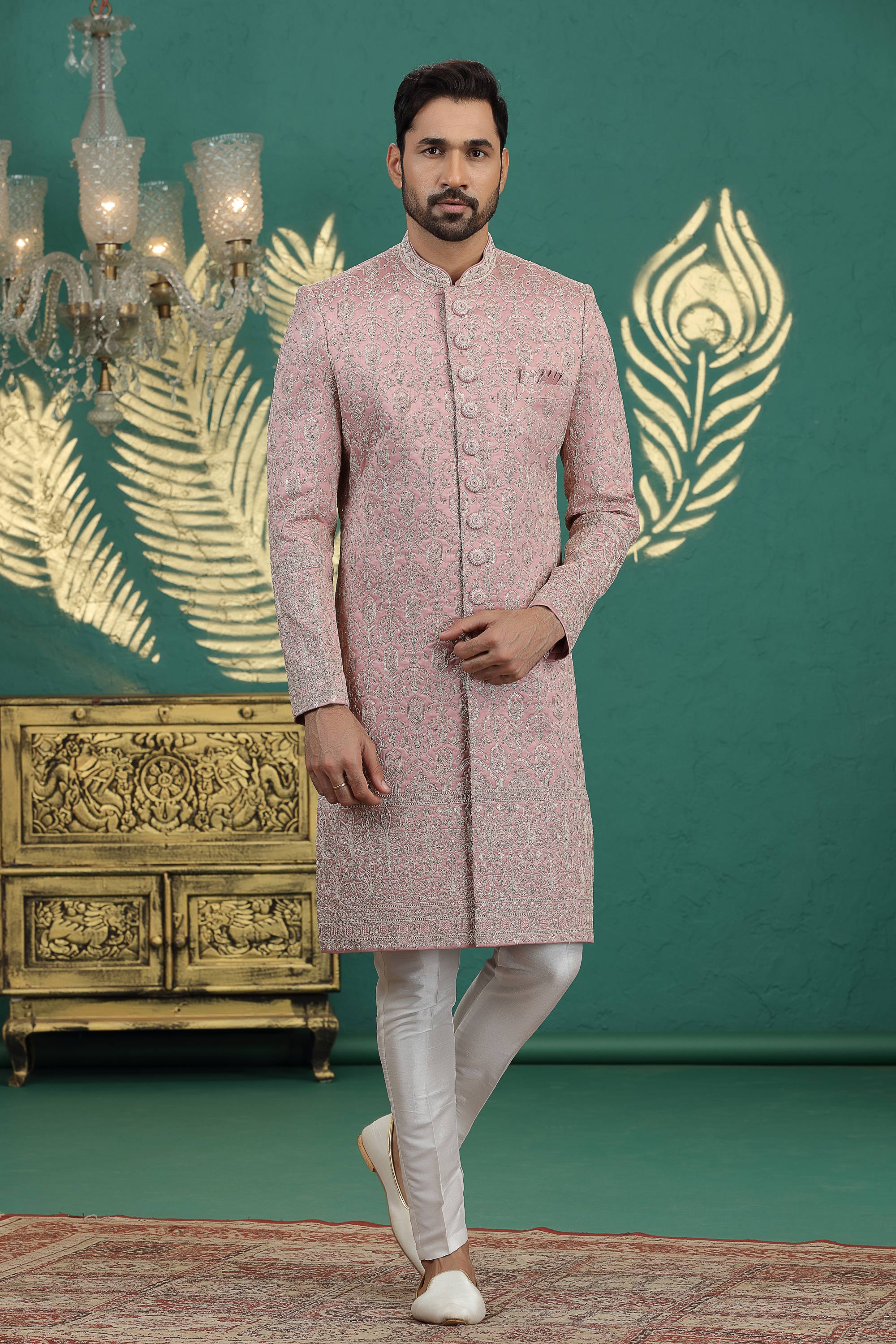 Celebrate traditional elegance with the Heavy Embroidered Art Silk Wedding Wear Readymade Groom Sherwani for Men. Crafted from art silk fabric, this sherwani is adorned with stunning embroidery, perfect for weddings or other festive occasions. Its ready-to-wear design offers an effortless fit and ensures maximum comfort without compromising on style. This versatile ensemble pairs wonderfully with traditional footwear for a polished and timeless look. Dress to impress and make a refined statement with this sherwani designed for those special once-in-a-lifetime celebrations.