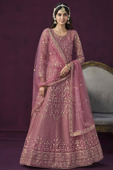 Pink Color Festive Wear Embroidered Fashionable Anarkali Salwar Suit In Net Fabric
