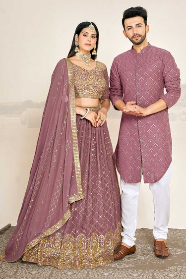 Pink Color Georgette Sequins Work Beautiful Couple Wear Set