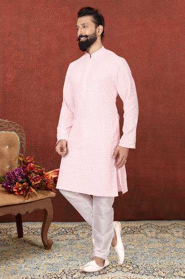 Pink Color Gorgeous Georgette Fabric Reception Wear Readymade Kurta Pyjama For Men