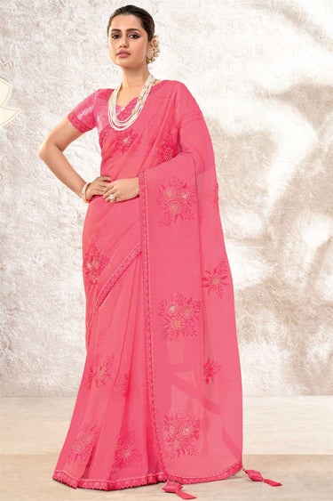 Pink Color Organza Fabric Party Style Gorgeous Saree