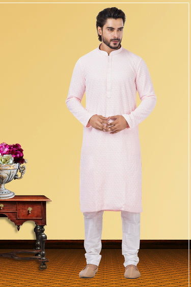 Pink Engaging Georgette Fabric Readymade Kurta Pyjama For Men