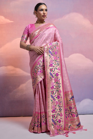 Pink Paithani Silk Meenakari Zari Weaving Border Work Saree