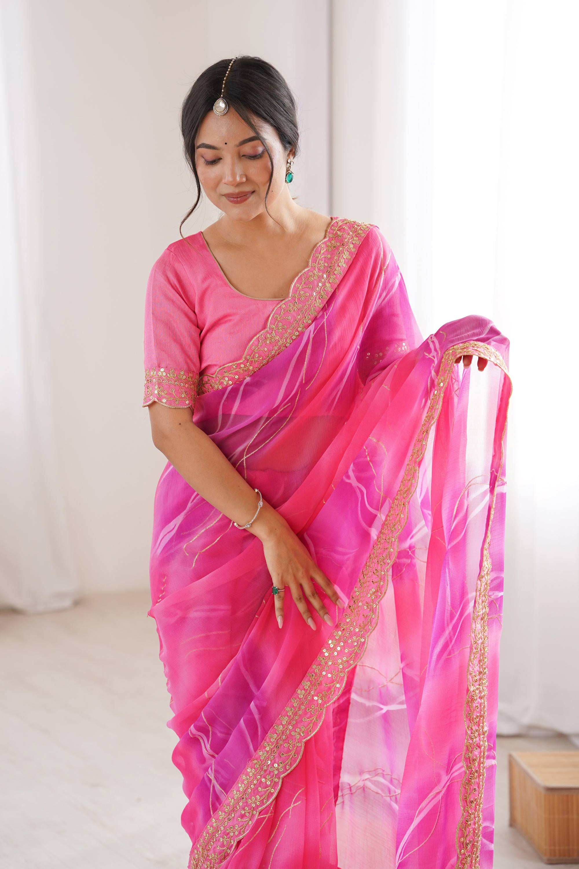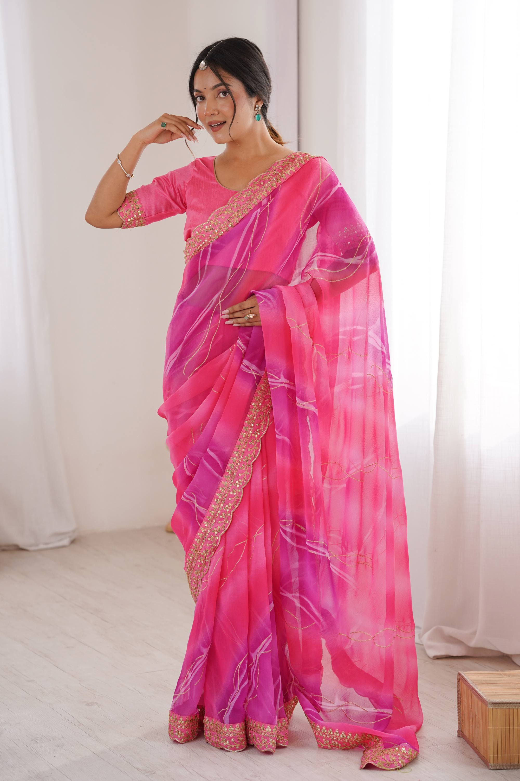 Pink Party Wear Georgette Chiffon Border Work Saree