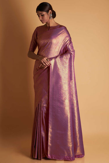 Pink Reception Wear Weaving Work Two Tone Kanjivaram Silk Fabric Saree