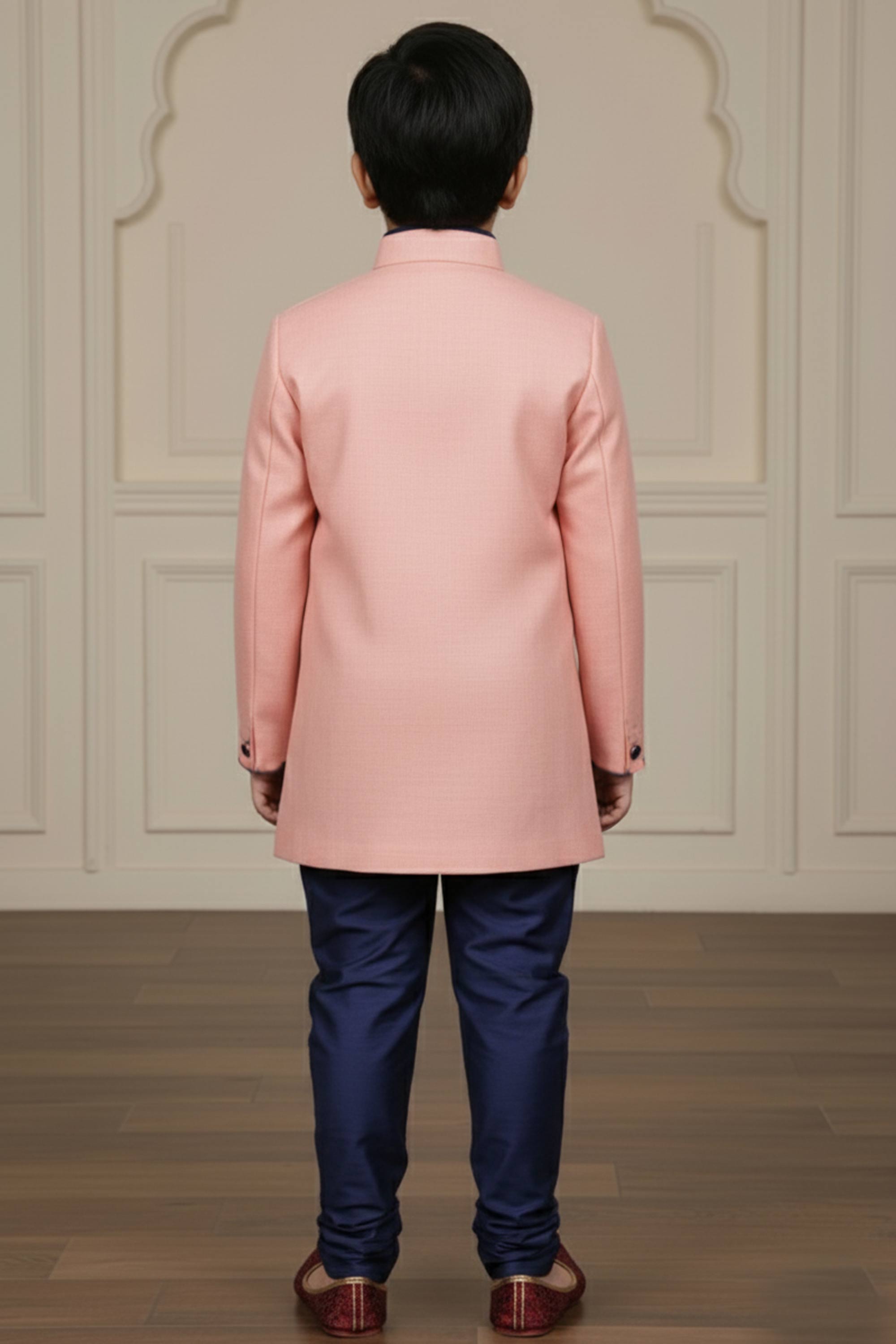 Pink Wedding Wear Art Silk Fabric Indo Western For Boys