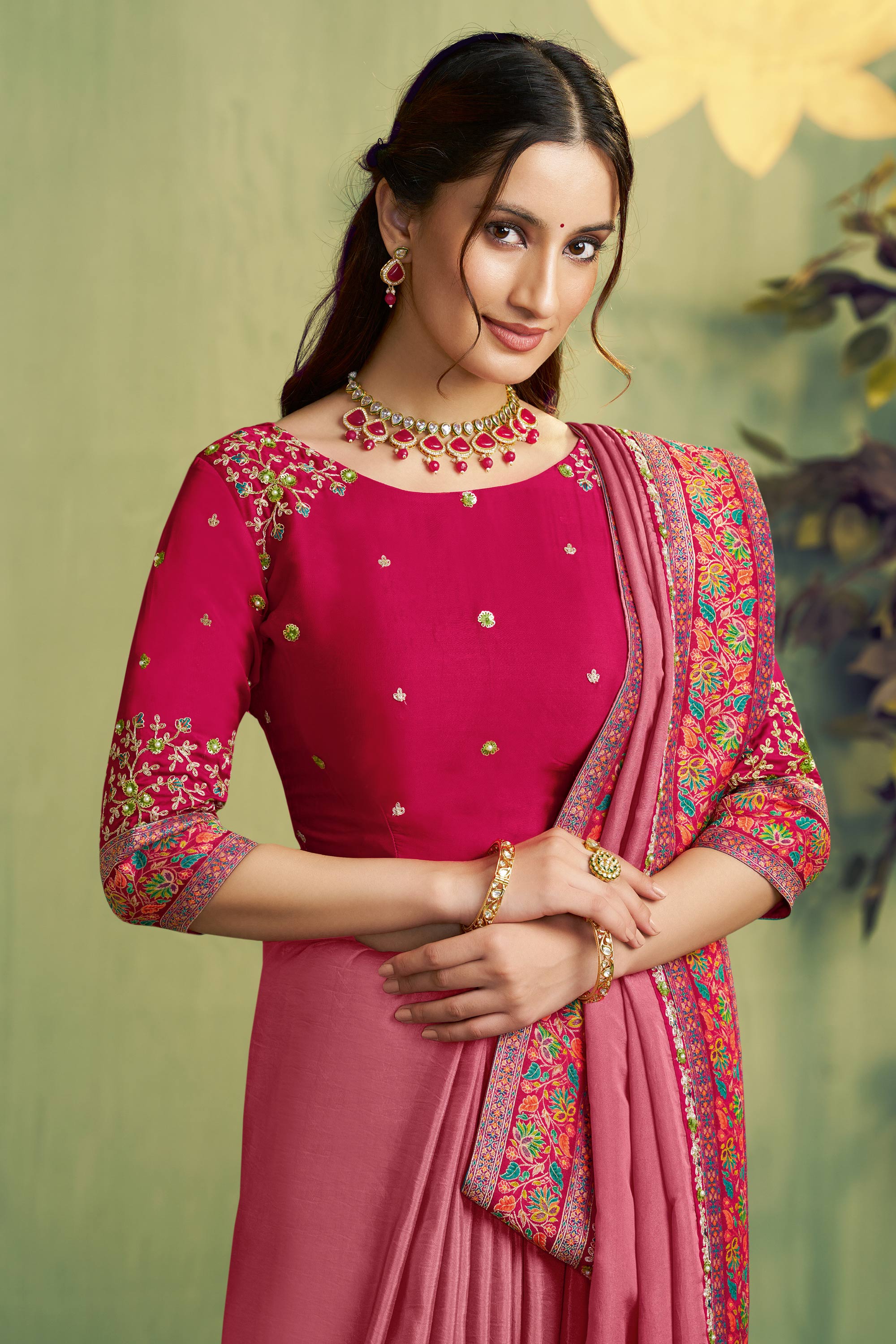 Pink Wedding Wear Silk Fabric Saree