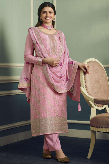 Prachi Desai Embroidered Pink Color Function Wear Designer Long Straight Cut Salwar Suit In Viscose Jacquard Fabric