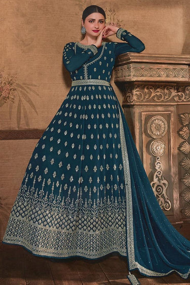 Prachi Desai Georgette Fabric Teal Color Remarkable Anarkali Suit
