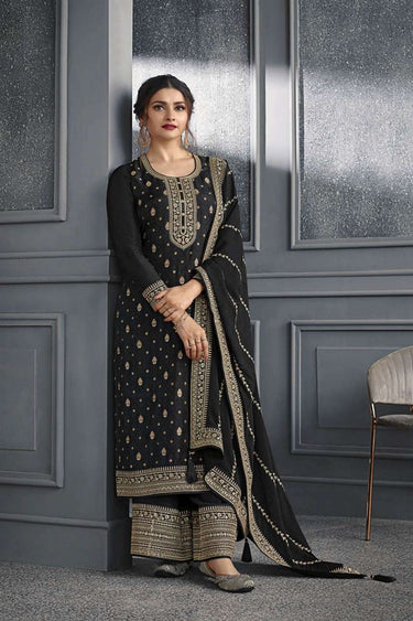 Prachi Desai Jacquard Fabric Black Color Fantastic Palazzo Suit