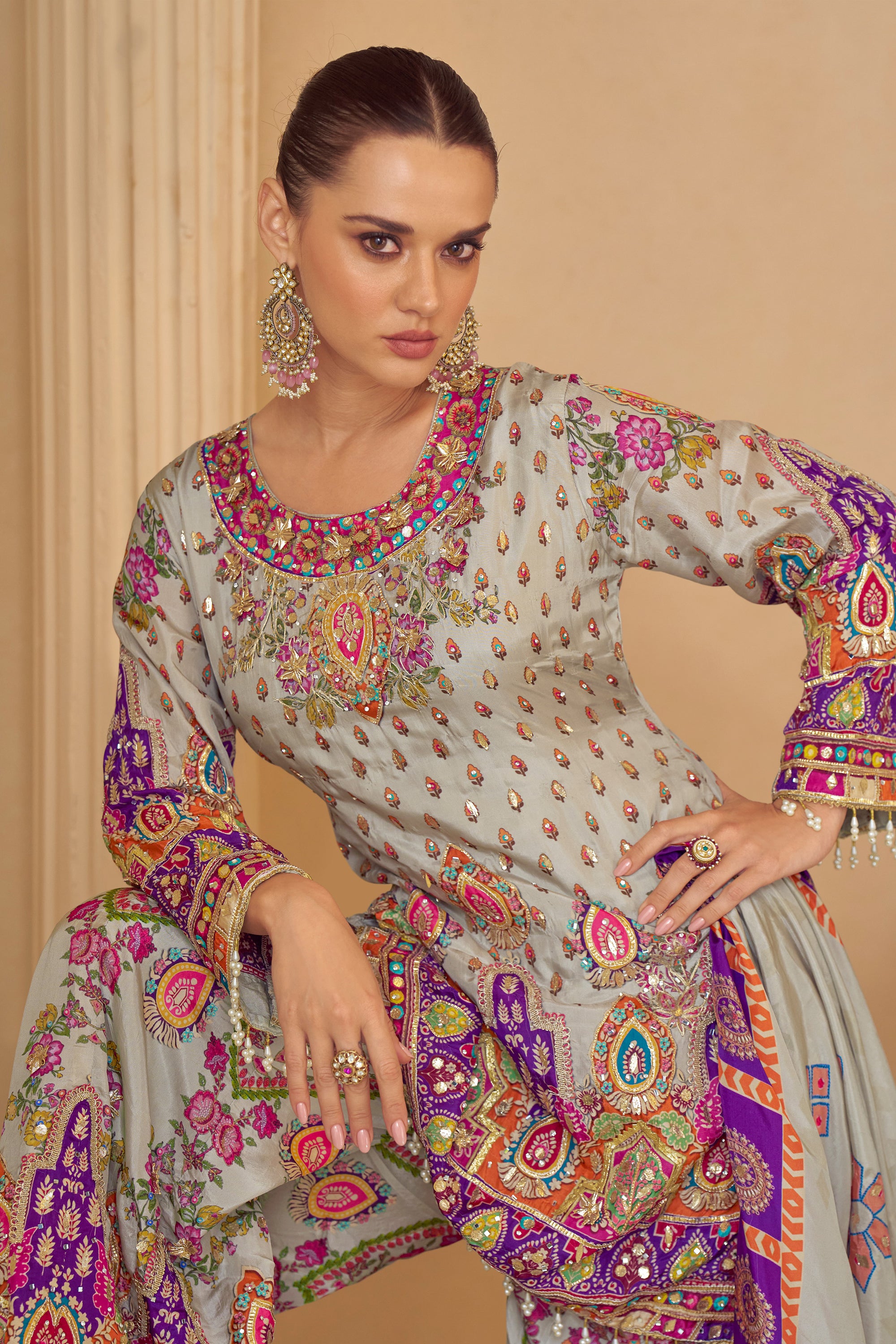 Premium Crepe Silk Readymade Sharara Suit In Multi Clor