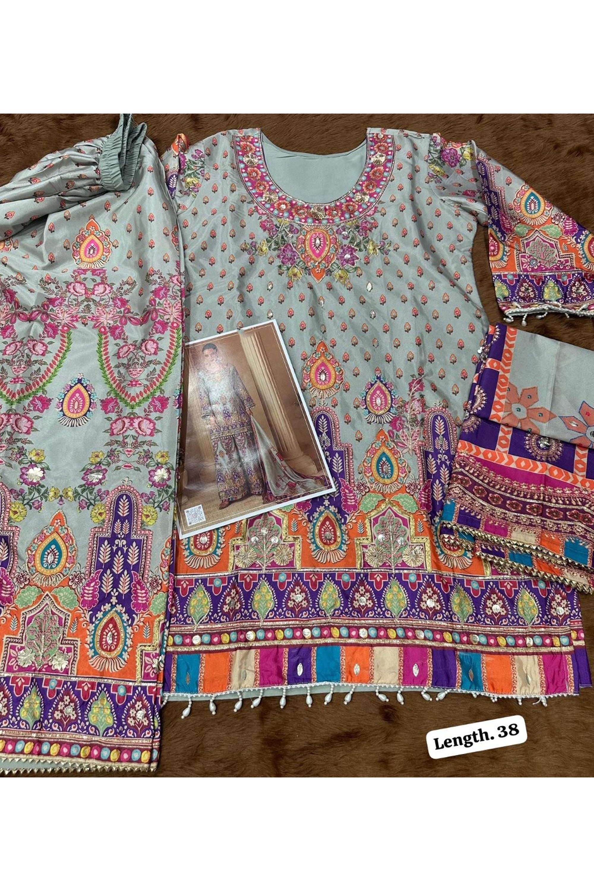 - If you have ordered multiple outfits with stitching services, we can provide one sample stitched outfit ON REQUEST (by contacting us) for fitting and style approval. Once you confirm the size and fit, we will proceed with stitching the remaining pieces accordingly.