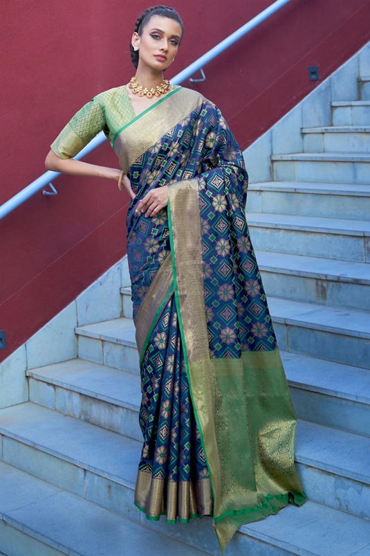 Puja Wear Navy Blue Trendy Patola Art Silk Weaving Work Saree